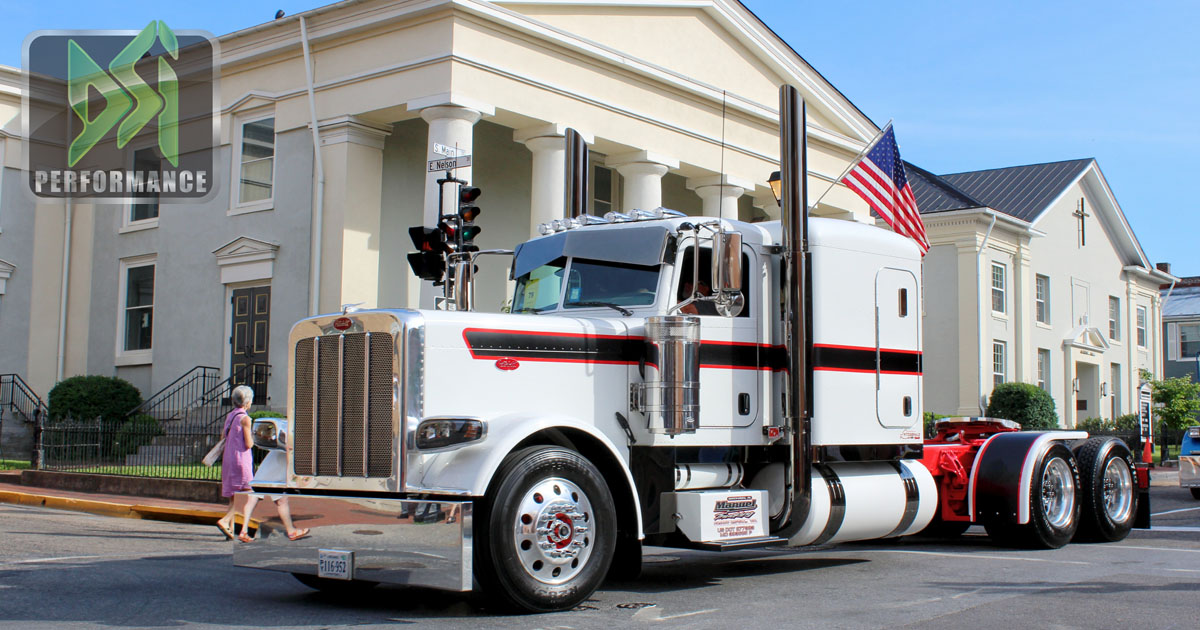 This handsome Peterbilt is just as impressive as the historic court house behind it. The classic Peterbilt styling is highlight by the classic architecture, and both have certainly stood the test of time!
